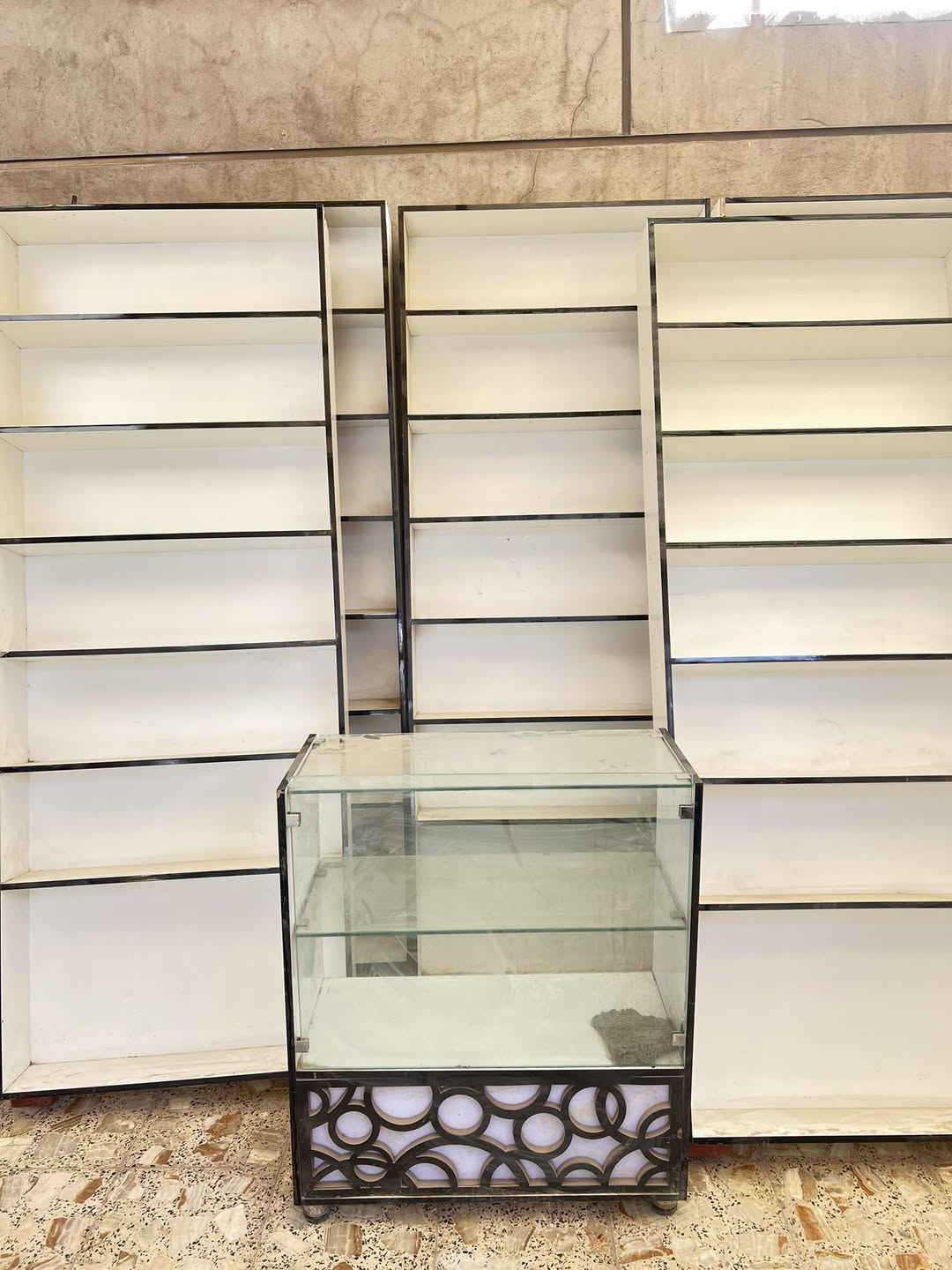 فاترينات ١٢٠×٤٠ • ميز كاشير/صيانة ١٢٠×١٨٠×٥٠ • بغداد بسماية