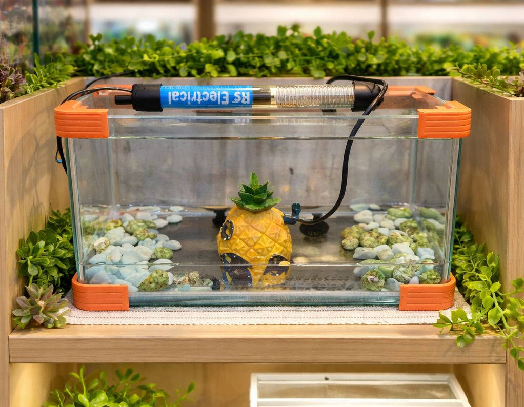 حوض سمك زينة مع محرار هيتر للتدفئة مع بيت للسمكة وحجار زينة مضيئة ارتفاع 20 سنتيم عرض 35 سنتيم للحجز على خاص أو مراسلة واتساب *********** توصيل لكل محافظات العراق