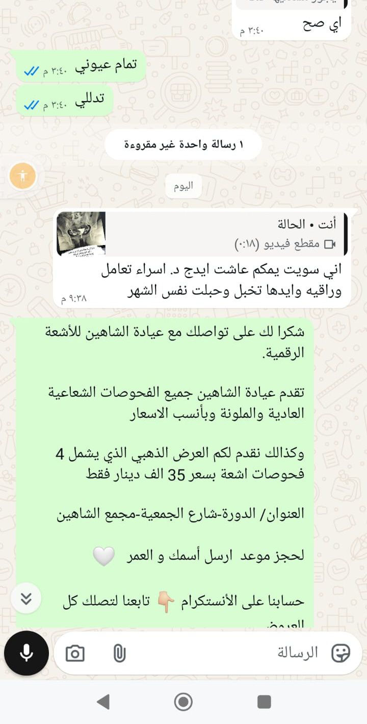 ✨ قصة أمل جديدة من عيادة الشاهين للأشعة الرقمية ✨ مريضة كانت تعاني من تأخر الحمل لعدة سنوات 💔 راجعت عدة أماكن، وكانت تبحث عن سبب واضح للمشكلة… تم إجراء فحص أشعة تلوين الرحم والأنابيب (HSG) في عيادتنا، وبفضل الله وبعد شهر واحد فقط من الفحص 🤍 كانت المفاجأة السعيدة… حملت والحمد لله 🤰✨ 📌 فحص HSG يساعد في: • التأكد من سلامة قنوات فالوب • تشخيص انسداد الأنابيب • تقييم شكل وتجويف الرحم • وأحياناً يساعد على فتح انسدادات بسيطة وزيادة فرصة الحمل في عيادة الشاهين نوفر: ✔️ أجهزة حديثة ✔️ دقة عالية بالتصوير ✔️ كادر متخصص ✔️ راحة وخصوصية تامة للمريضة 🌸 لا تفقدي الأمل… أحياناً الحل يكون بفحص بسيط. 📍 العنوان: الدورة – شارع الجمعية – مجمع الشاهين 📩 للحجز والاستفسار راسلينا بالخاص أو واتساب *********** #تأخر_الحمل #اشعة_تلوين #HSG #عيادة_الشاهين #بغداد