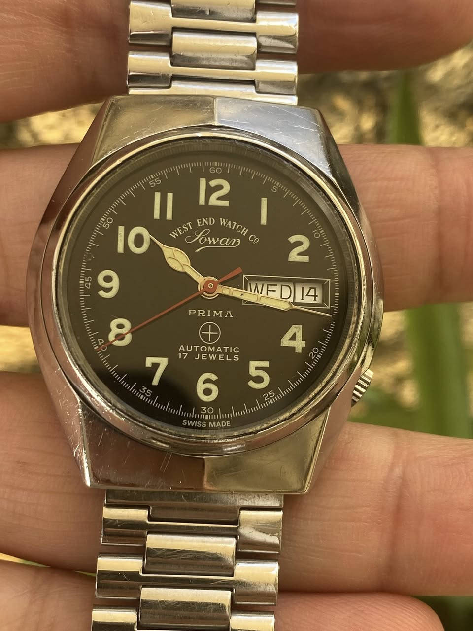 السلام عليكم ويست اند سويسري اصلي اتوماتيك نظافة ٩٥٪ مينا لوك ارقام وعقارب لامينوس مضيئة بلادية بالكامل زجاج ضد الخدوش تاريخ عربي وإنكليزي ستانلس ستيل بالكامل مقاومة للماء القطر ٣٦ السعر ١٥٠ يوجد توصيل لجميع المحافظات ***********