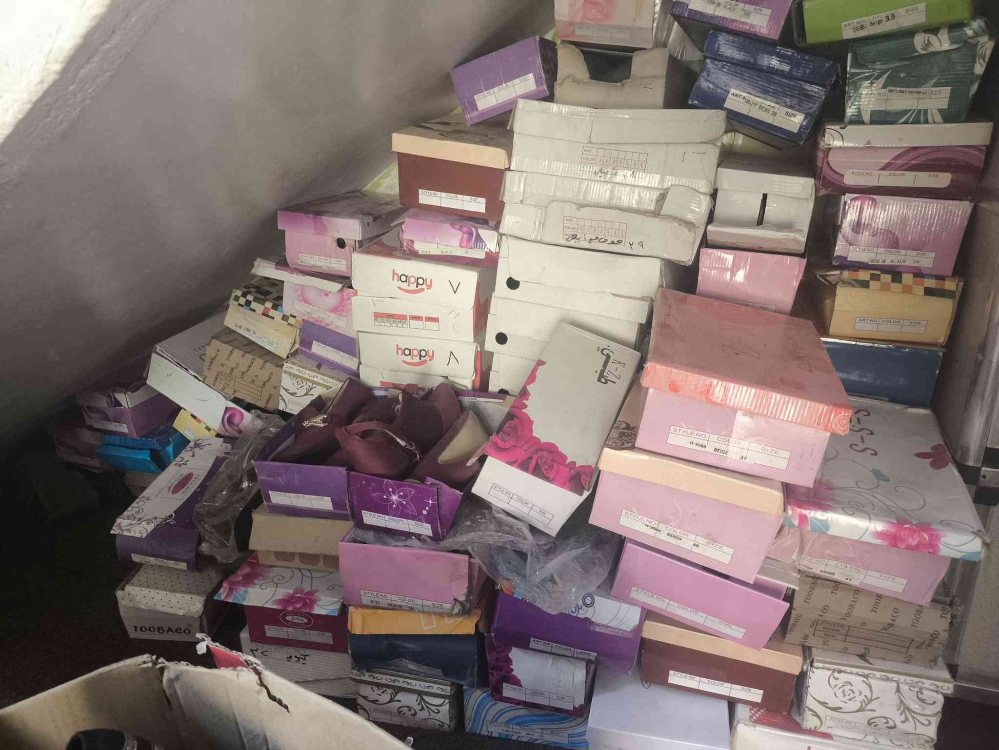 سلام عليكم احذية نسائية تصفية محل شلعة للبيع عدد 210 (زوج) قطعة. وسعر زوج قطعة ب3.000 مكاني نجف للتواصل والاستفسار ***********