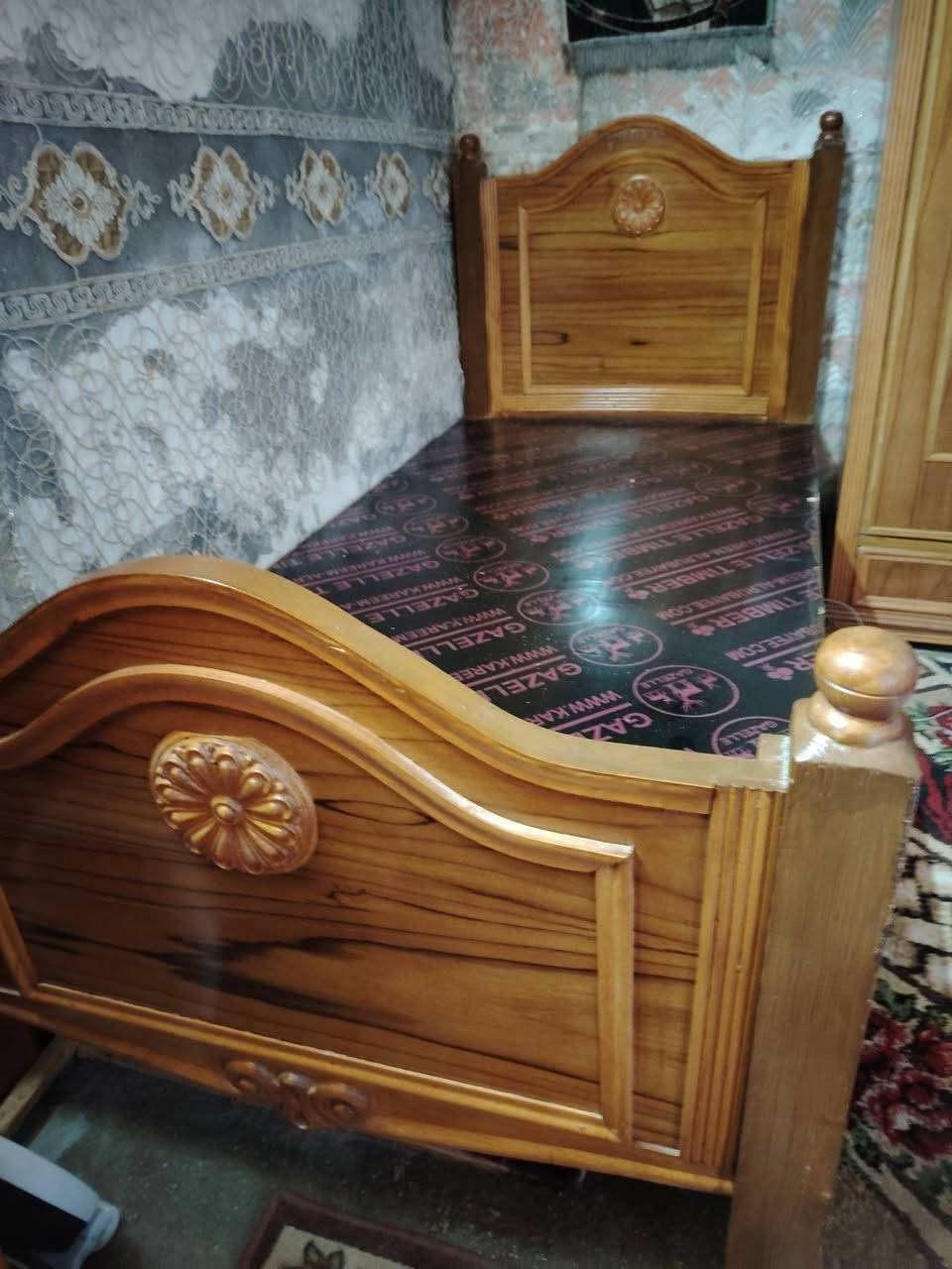 سرير خشب عراقي • دوشك • ٢ كومودي