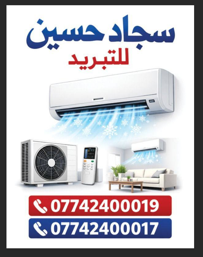 سجاد حسين للتبريد ✅يوجد كادر مختص بل عمل👥 1️⃣-نصب وفتح كافة السبالت مع ضمان عمل🛠 2️⃣-غسل سبالت عامه من الاتربه والزيوت🚿 3️⃣-شد سبالت جداري والعمودي وصيانه موقعيه 6️⃣-مستعدون للعمل في اي مكان🚚وفي اي وقت ↘️الاسعار مناسبه ✅ الاستفسار واتساب+الاتصال☎️ ***********