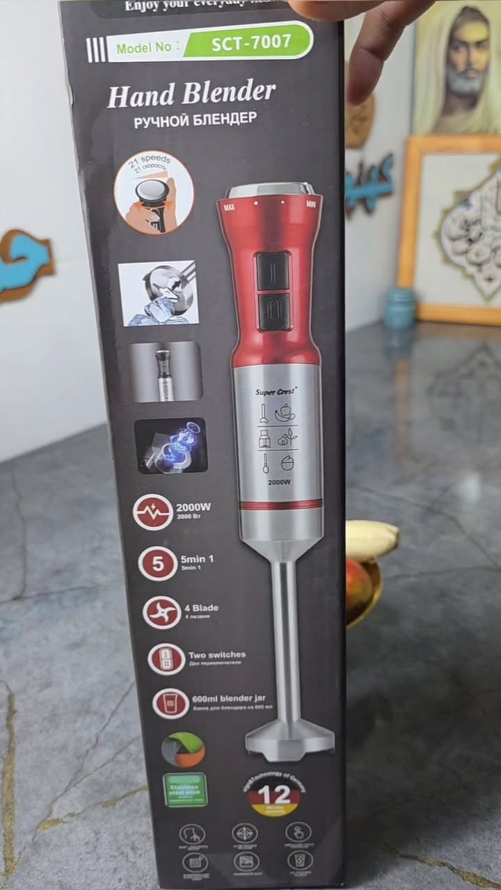الاستخدامات خلط وتحضير الشوربات الساخنة والباردة مباشرة في القدر تحضير العصائر الطازجة والسموثي هرس البطاطا والخضروات تحضير أغذية الأطفال بسهولة خلط الصلصات، الكريمة، والمواد السائلة وشبه الصلبة مناسب للاستخدام المنزلي اليومي المميزات محرك قوي بقدرة 2000 واط لأداء سريع وفعّال 21 مستوى سرعة للتحكم الدقيق حسب نوع المكونات شفرتان متقاطعتان 4 شفرات من الستانلس ستيل بتصميم ماسي معكوس لخلط متجانس عصا خلط من الفولاذ المقاوم للصدأ (Stainless Steel Stick) زرين للتحكم بالسرعة (I II) لسهولة الاستخدام تصميم مريح لليد مع قبضة ثابتة يعمل على جهد 220–240 فولت | 5060 هرتز مناسب لخلط الشوربات، الصلصات، وأغذية الأطفال خامات متينة وجودة تصنيع عالية محتويات الصندوق خلاط يدوي Super Crest دليل الاستخدام علبة المنتج الأصلية قياس المنتج: طول 7 عرض 7 ارتفاع 40. طول السلك: 90 سم. الملاحظات لا يُغمر الجزء العلوي (المحرك) بالماء يُنصح بعدم التشغيل المتواصل لفترات طويلة للحفاظ على عمر المحرك لم يتم ذكر بلد المنشأ قوة تشتغل من أول ضغطة 💪 خلاط سوبر كريست بقوة 2000 واط يخلط، يهرس، ويحضّر كل شيء بسرعة وسلاسة. 21 سرعة تعطيك تحكم كامل مهما كان نوع المكونات. شفرات ستانلس ستيل حادة تضمن نتيجة ناعمة ومتجانسة. مثالي للشوربات، العصائر، وأكل الأطفال. تصميم عملي، قبضة مريحة، وأداء يعتمد عليه يوميًا. خلاط واحد… استخدامات ما تنتهي 🔥 **إذا كنت صاحب هذا الإعلان وتريد حذفه لأي سبب، رجاءا أرسل رسالة إلى الدعم الفني**