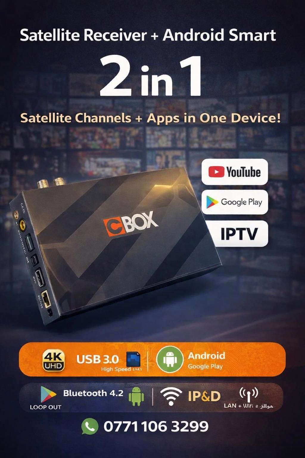 🎬 أفلام – مباريات – مسلسلات – تطبيقات – كلشي بمكان واحد ⚡ أداء قوي وسلس وبدون تقطيع ليش تحتار وتشتري جهازين؟ 🤔 ليش تدفع أكثر وعندك حل يجمع كلشي؟ هالجهاز يجمعلك رسيفر قنوات فضائية + أندرويد سمارت بنفس الجهاز 🔥 يعني قنوات + يوتيوب + تطبيقات + IPTV… كلهن سوا! 📡 2 in 1 – ترفيه متكامل بجهاز واحد ✅ قنوات فضائية ✅ يوتيوب جاهز ✅ تحميل تطبيقات من Google Play ✅ يدعم IPTV ✅ دقة 4K صورة نار 🔥 ✅ USB 3.0 سريع ✅ بلوتوث 4.2 ✅ WiFi + LAN اتصال ثابت جهاز واحد… ريموت واحد… وراحة بالك مضمونة 👌 مناسب للبيت، الاستراحة، أو حتى الكوفي شوب 📞 للحجز والاستفسار: *********** الكمية محدودة لا تتأخر 🔥