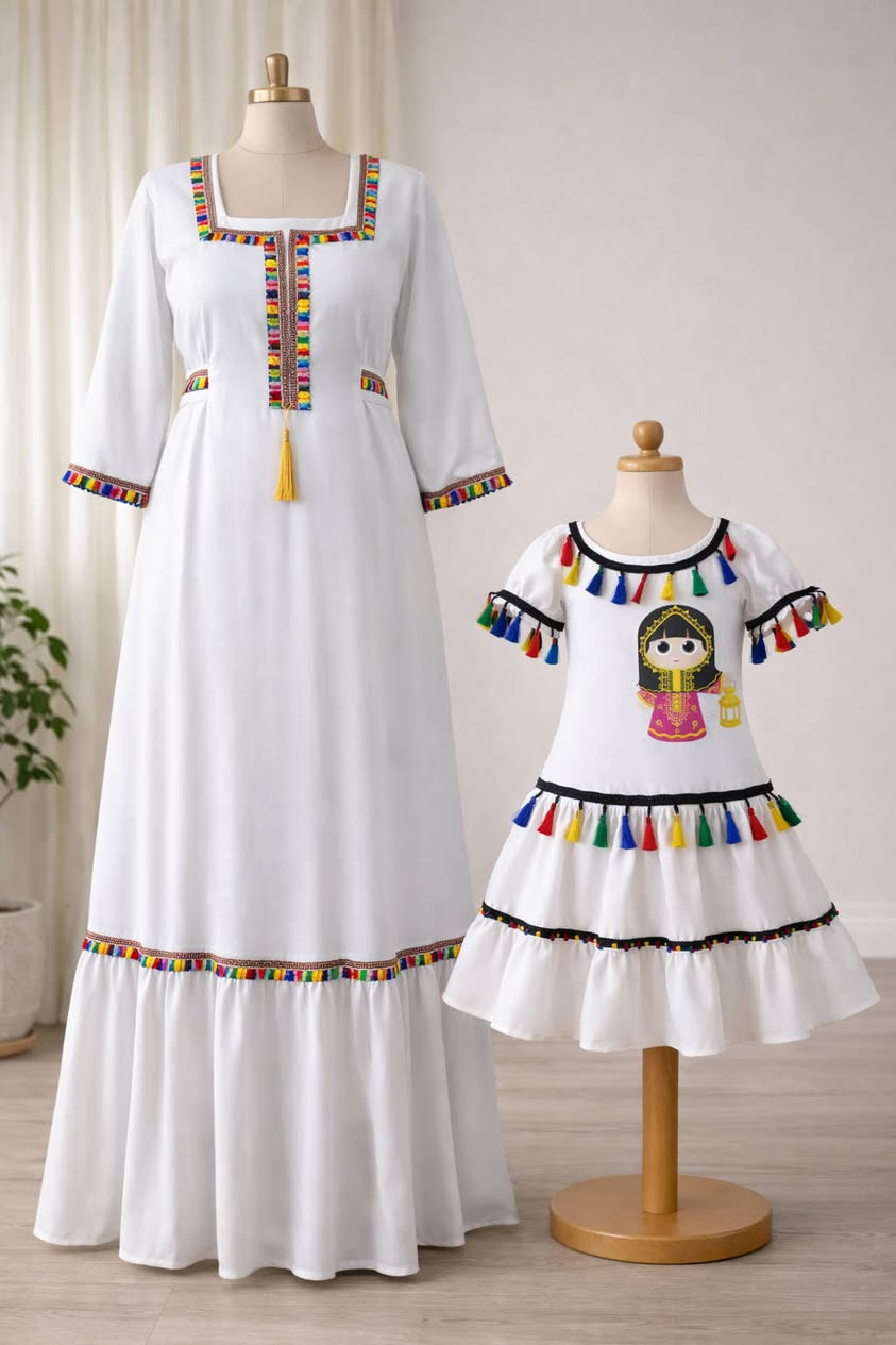 فستان دابل ايطالي • مقاسات نسائية 38-48 • أطفال 6-15