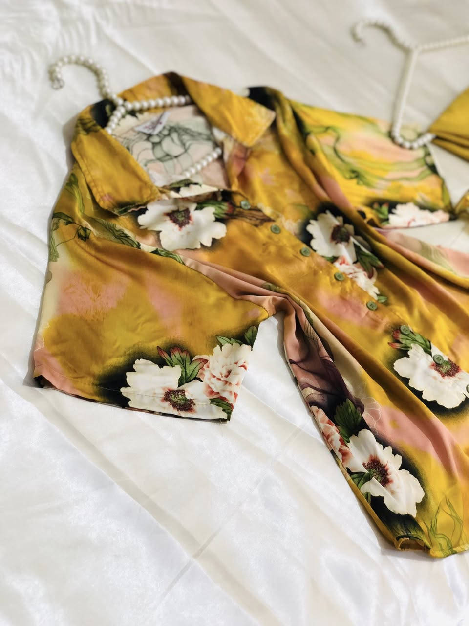 ثوب نوم حرير • يوصل للركبة • مقاسات ٦٠ ٦٥ ٧٠