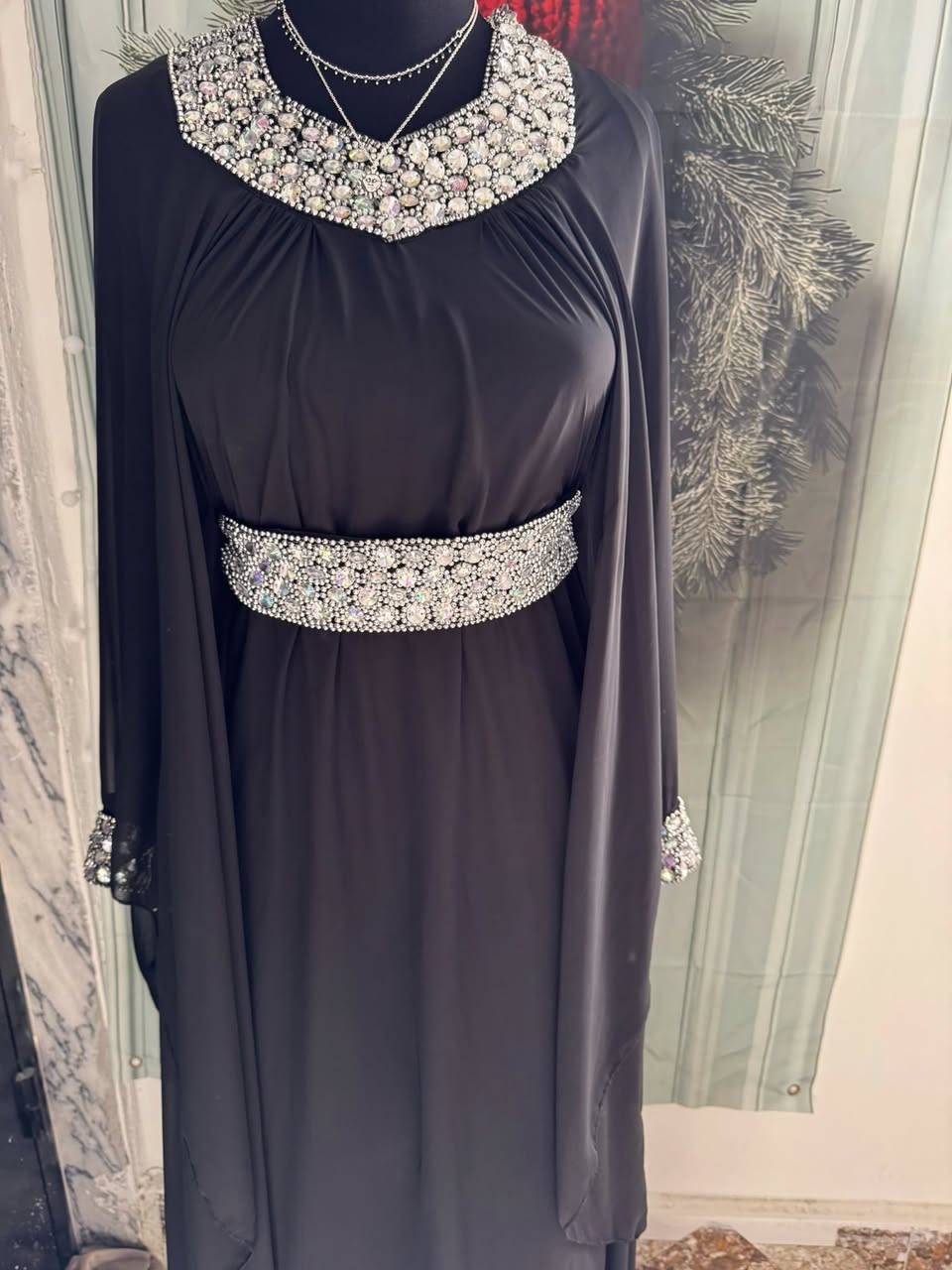 عباية سوداء • قماش كريب • شيفون منقط بستراس
