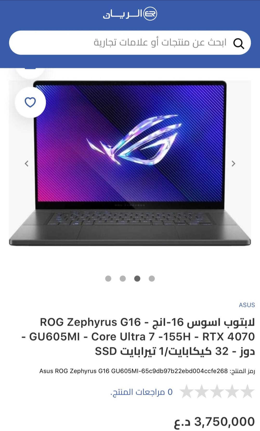 لابتوب اسوس 16 انچ كور 7 الترا رام 32 هارد 1 تيرا ssd كارت شاشة RTX 4070 نظافة 95% ملحقات كاملة (كارتون - شاحنة - ماوس ) السعر مليونين و 600 الف *********** مكان كربلاء