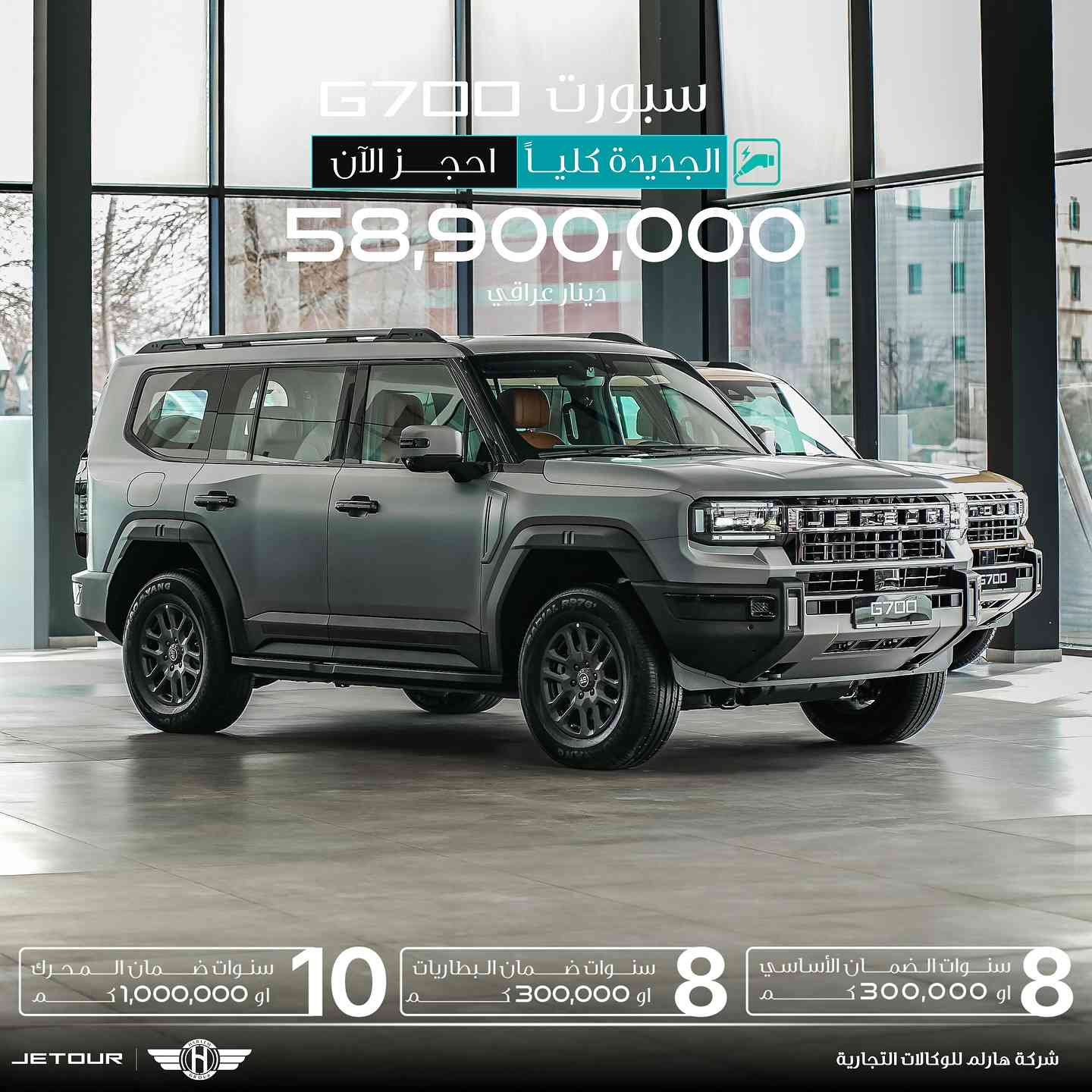 جيتور G700 سبورت (بلك-إن هايبرد 🔋) المحرك: 2.0 لتر تيربو 4 سلندر حقن مباشر+ محركين كهربائية القوة الاجمالية 904 حصان عزم الدوارن (نيوتن-م) : 1135 (محرك البنزين + الكهرباء) ناقل الحركة: أوتوماتيكي مخصص لنظام الهايبرد 2DHT نظام الدفع : دفع رباعي - موتور ثنائي المدى: بشحنة كهربائية وتعبئة وقود كاملة يصل إلى 1000 كم (WLTP) سعة البطارية كيلووات/س: 34.13 نظام تعليق متوازي مزدوج (دبل ويشبون) امامي وخلفي الضمان الأساسي وضمان البطارية: 8 سنوات او 300,000 كم (ايهما اولاً) ضمان المحرك: 10 سنوات او 1،000،000 كم (أيهما اولاً / للمالك الأول) السعر: 58,900,000 دينار عراقي (بدون رقم) المواصفات *فتحة سقف بانوراما *ويل الالمنيوم قياس 18 إنج قياس *كاميرات محيطية 540 درجة *حساسات اصطفاف أمامية وخلفية *نقطة عمياء *شاشة عرض ترفيهية قياس 15.6 انج *شاشة عريضة لمعلومات القيادة 35.4 انج *نظام صوتي فاخر 12 سماعة *ابل كاربلاي واندرويد اوتو لاسلكي *مقصورة الركاب من الجلد الفاخر *المقاعد الامامية والخلفية مبردة *مقعد السائق كهربائي مع ذاكرة ووظيفة الترحيب *مقعد الراكب كهربائي مع ذاكرة ووظيفة الترحيب ومسند للساق *المرايا الخارجية قابلة للطي كهربائياً *قفل/فتح النوافذ والبانوراما بالبصمة *خاصية إغلاق نوافذ وفتحة السقف عن بعد *دخول ذكي (بصمة) *الصندوق شفط وبالبصمة *دواسات جانبية *مصابيح أمامية وخلفية أوتوماتيكية LED مع مصابيح نهارية *وسائد هوائية امامية، وسائد هوائية امامية جانبية، ستائر هواء جانبية شركة هارلم للوكالات التجارية الوكيل الرسمي لسيارات جيتور في العراق بغداد - البياع، الشارع الأول مقابل المتنزه *********** *********** *********** *********** *********** أربيل - شارع ١٠٠، مقابل طوارئ روجافا *********** *********** *********** *********** *********** دهوك - ترمنال، مقابل شارع تناهى *********** *********** *********** السليمانية - شارع 60 *********** *********** كركوك - حي الخضراء، قرب النفق الجديد *********** *********** *********** النجف - المعارض الجديدة قرب معرض تويوتا *********** *********** كربلاء - مدينة معارض كربلاء - معرض رقم 12 *********** ***********