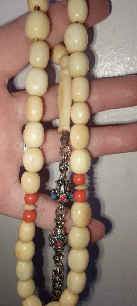 رمضان كريم عليكم بالخير واليمن والبركات 💚 مسبحة عاج ناب الفيل انتيك شغل يدوي مبصمة عدد الحبات٣٣حبة وزن صافي ٥٢غرام محلاية باربع فواصل مرجان وشرابة فصة حلبي 💚💚💚 **إذا كنت صاحب هذا الإعلان وتريد حذفه لأي سبب، رجاءا أرسل رسالة إلى الدعم الفني**
