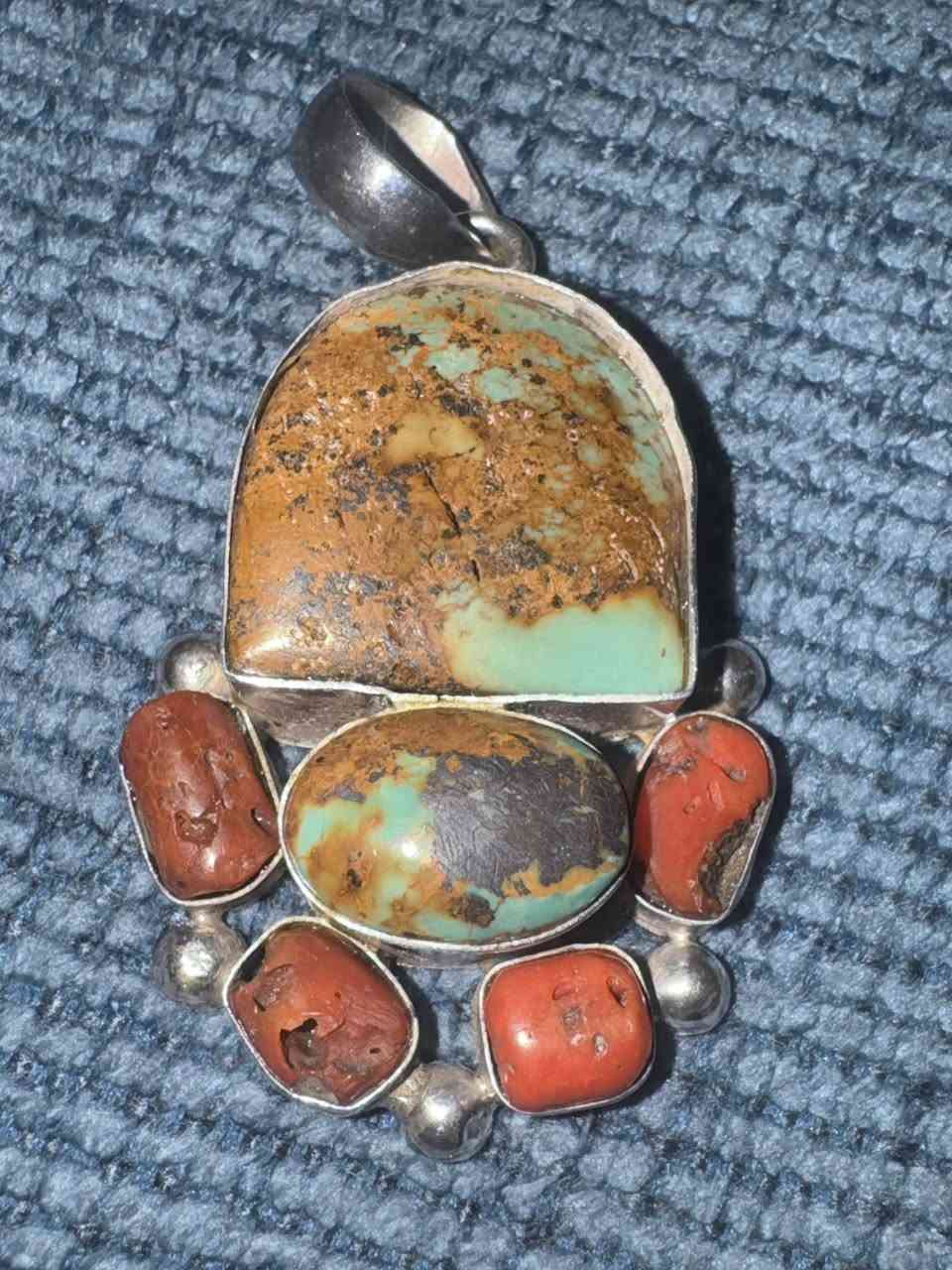 حجر فيروز مع مرجان احمر والفضة **إذا كنت صاحب هذا الإعلان وتريد حذفه لأي سبب، رجاءا أرسل رسالة إلى الدعم الفني**