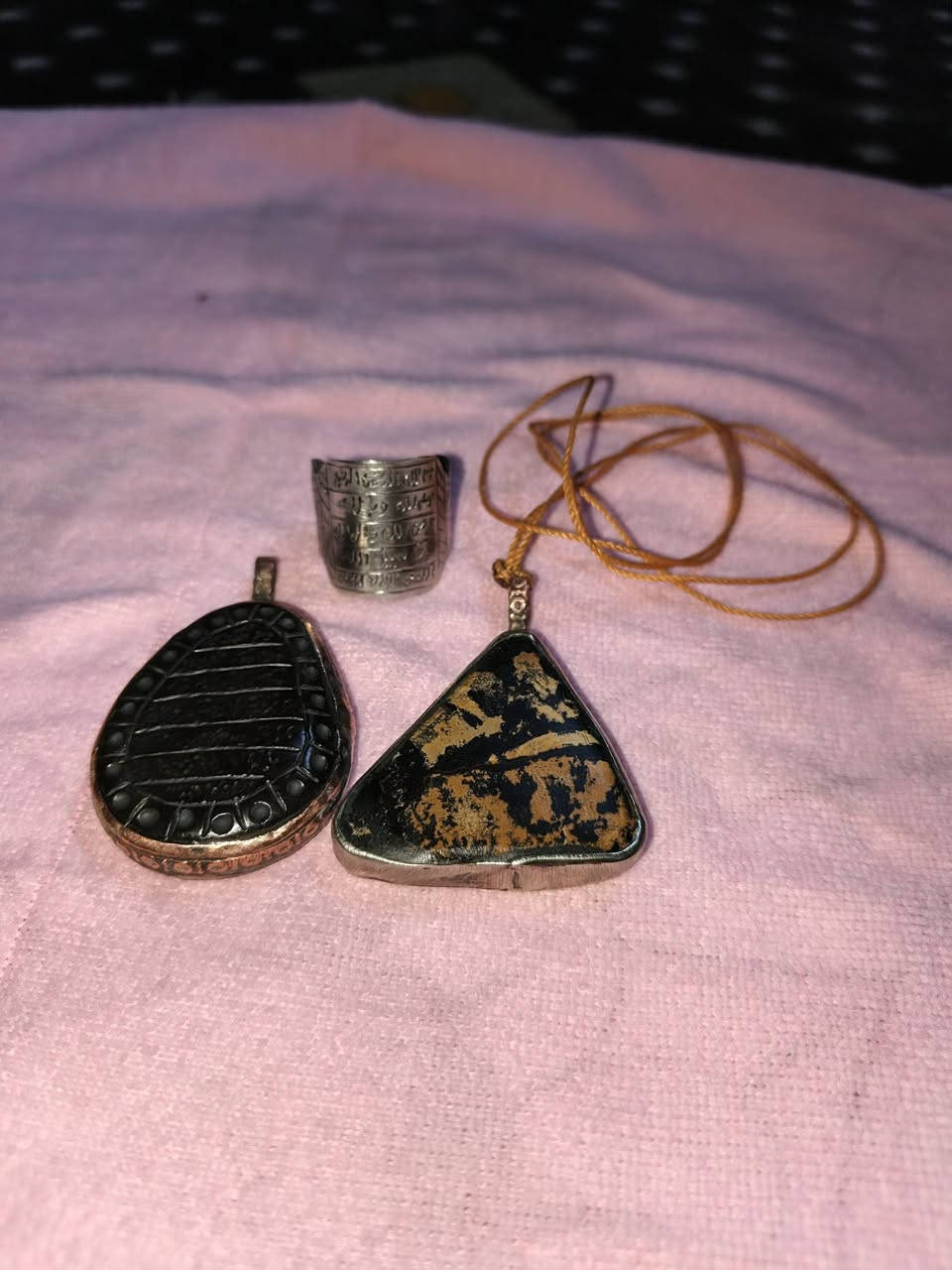 سلام عليكم ميداليات قديمه تحفيه او محبس مطلسم كلش حلو تحفه من طراز القديم سعره شلع بلاش 75 تفاصيل عله هاذه الرقم ***********