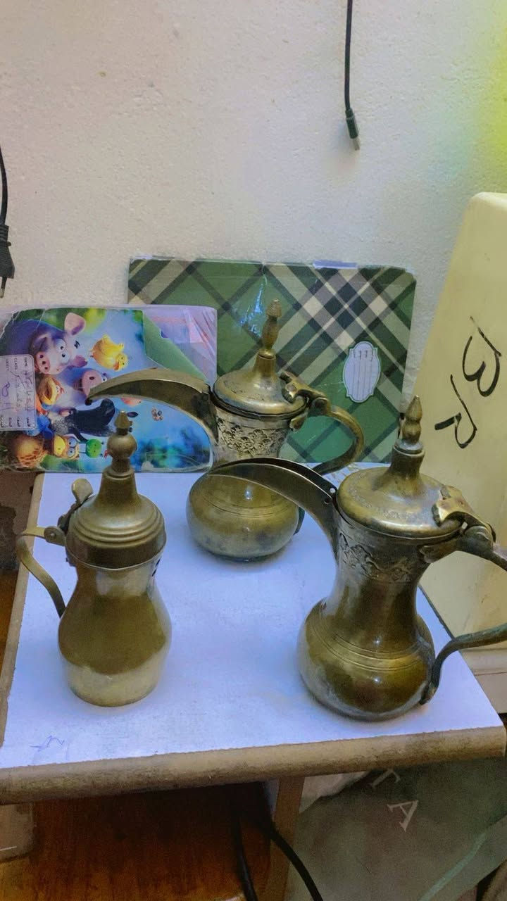 طقم نحاس تراثي • مبخرتين • ٤ غلايات قهوة