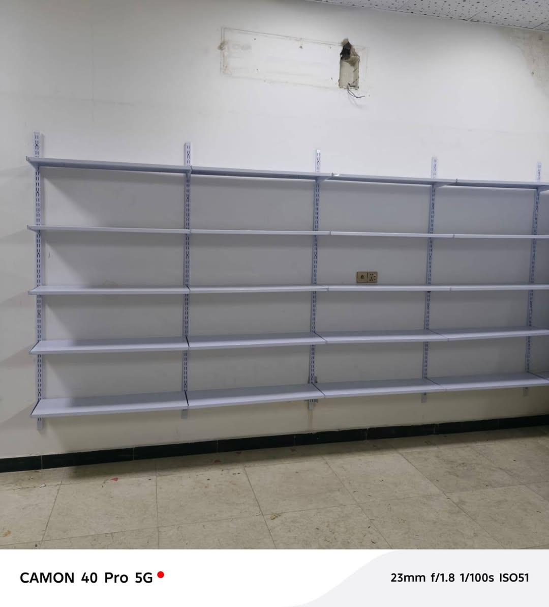 رفوف جدد بس شديتهن وفتحتهن قياس متر في30 عدد40رف السعر 225....***********