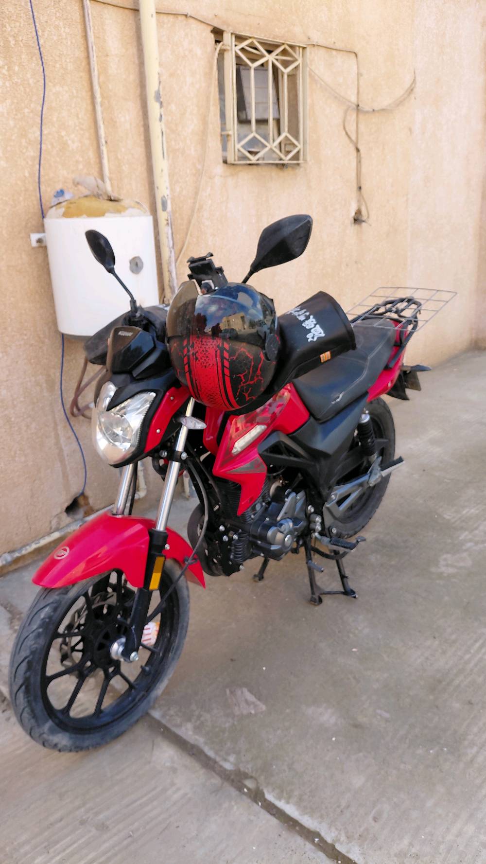 درّاجة نارية من نوع كيوي، لونها أحمر أسود، بحالة جيدة تعمل بمحرك بنزين متين. مناسبة للمدن والطرق الوعرة. فرصة رائعة للراغبين في شراء دراجة قوية وموثوقة.