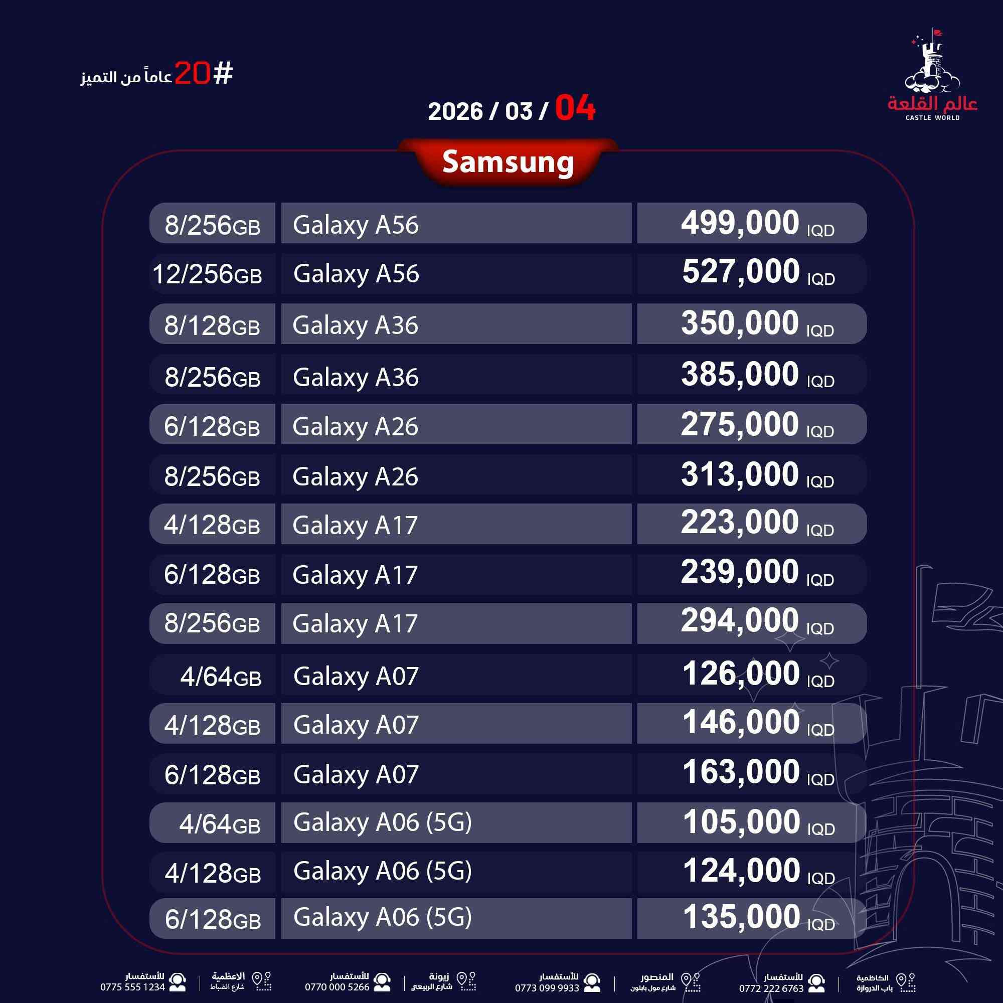 سامسونك A56 مستخدم ايام محلقات بعدها ممفتوحه دبل سيم كارت الذاكرة 256 انتبه رام عشوائيه 12 + 12 مو 8 السعر 450 وبي مجال للشراي رقمي 0775 568 3453