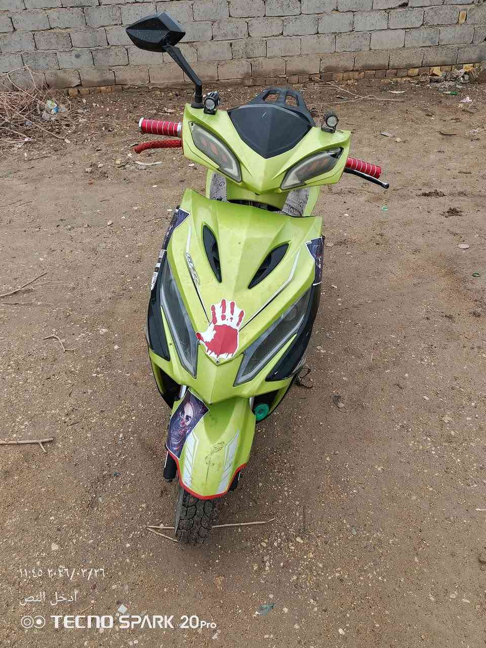 السلام عليكم دراجه سكنز للبيع جاهزه كهربائياته كلها شغاله ماكينه بيها دخان تخم تاير جديد كلجات جدد كابريتر جديد السعر 175 وبيها مجال ***********